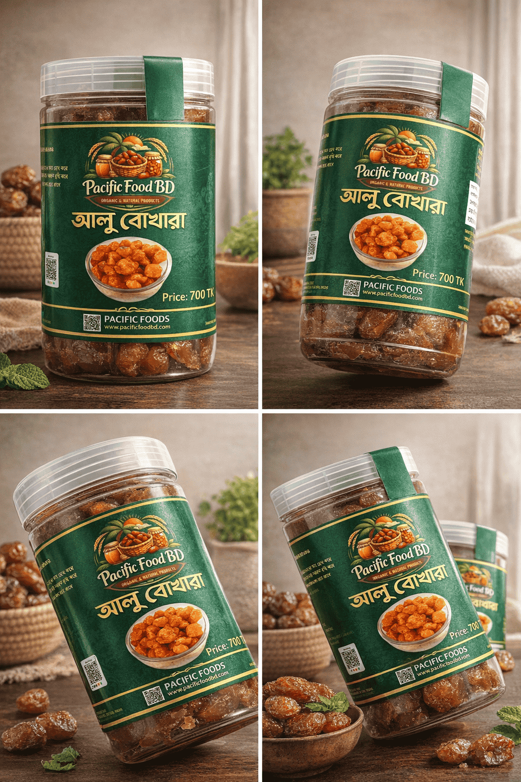 প্রিমিয়াম কোয়ালিটি আলু বোখারা (Premium Alu Bukhara)আপনার রান্নায় রাজকীয় স্বাদ আর সুগন্ধ নিয়ে আসতে Pacific Food BD নিয়ে এলো বাছাইকৃত সেরা মানের প্রিমিয়াম আলু বোখারা। এটি সম্পূর্ণ প্রাকৃতিক এবং স্বাস্থ্যসম্মত উপায়ে প্রক্রিয়াজাত করা, যা আপনার খাবারের স্বাদকে করবে অনন্য।কেন আমাদের আলু বোখারা সেরা?সেরা উৎস: আমরা সরাসরি সেরা বাগান থেকে বড় আকারের এবং মাংসল আলু বোখারা সংগ্রহ করি।প্রাকৃতিক গুণাগুণ: এতে কোনো প্রকার কৃত্রিম রঙ বা ক্ষতিকর প্রিজারভেটিভ ব্যবহার করা হয়নি।পুষ্টিগুণে ভরপুর: আলু বোখারা হজম শক্তি......